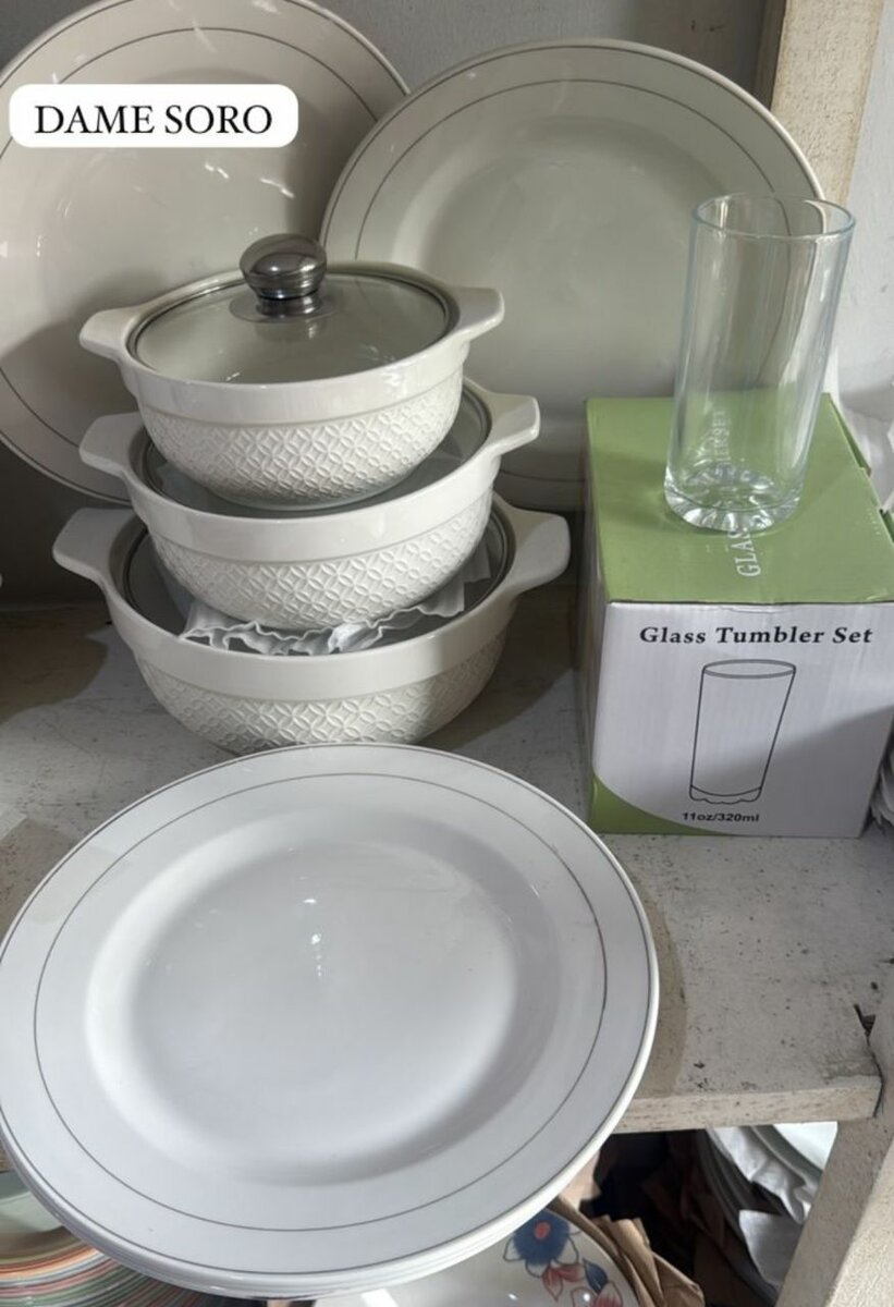 Transformez votre table avec cet ensemble de vaisselle élégante en céramique. Comprend des assiettes plates,des soupières et verres