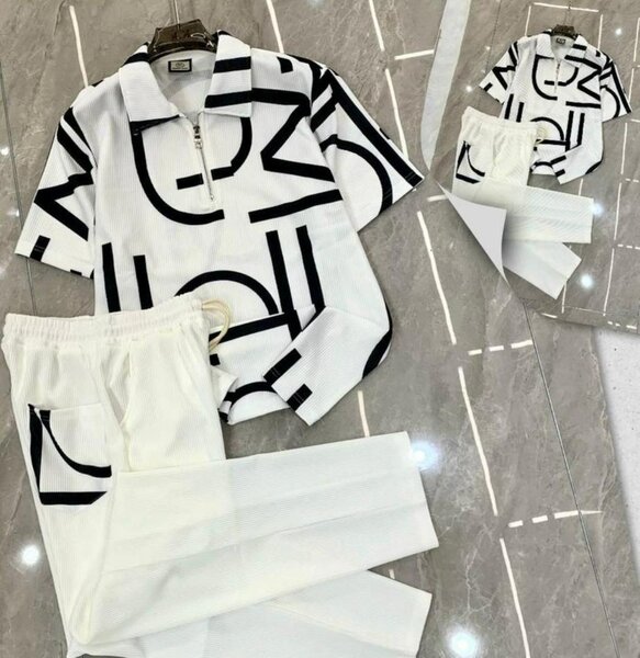 Cet ensemble élégant comprend un haut imprimé moderne et un pantalon blanc confortable. Parfait pour une tenue décontractée ou une sortie entre amis. Le design unique du haut attire l'œil, tandis que le pantalon offre une coupe ajustée et pratique. Idéal pour les hommes recherchant style et confort.