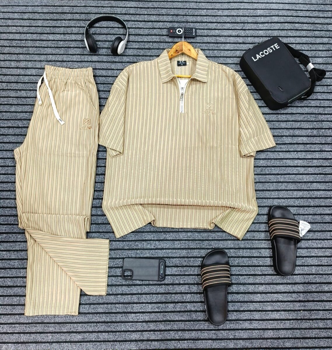 Optez pour un look estival avec cet ensemble décontracté à rayures. Inclut un haut zippé et un pantalon léger pour une tenue confortable et stylée. Idéal pour les sorties décontractées ou pour se détendre à la maison. Un must-have pour votre garde-robe!