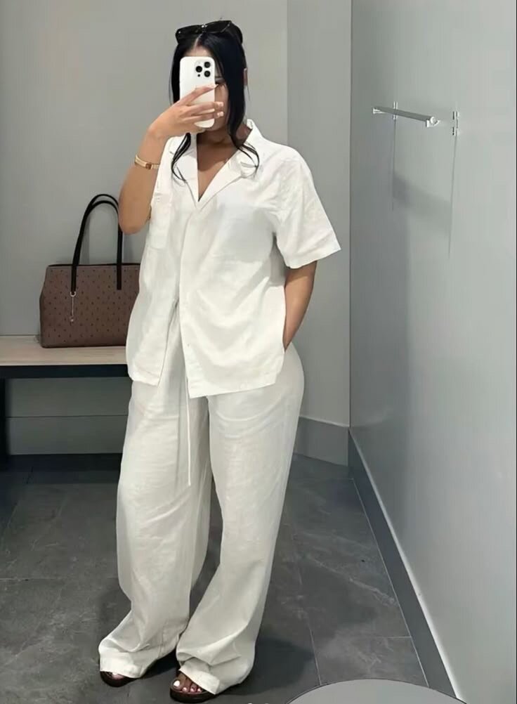 Découvrez cet élégant ensemble décontracté pour femme, idéal pour un look à la fois confortable et raffiné. Fabriqué dans un tissu léger et respirant, cet ensemble allie une chemise à manches courtes à un pantalon ample, parfait pour une journée en ville ou un brunch entre amis. Un choix idéal pour celles qui cherchent à allier style et confort au quotidien.