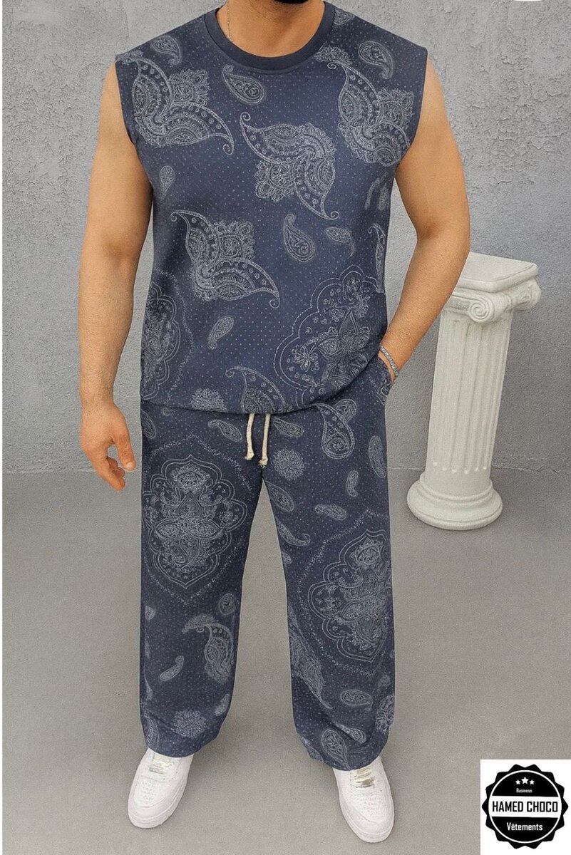 Optez pour cet ensemble bleu confortable et stylé, idéal pour les moments de détente. Son imprimé tendance et sa coupe ample offrent une allure moderne et décontractée. Parfait pour les journées relax à la maison ou les sorties décontractées.