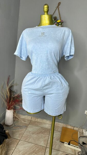 Adoptez un style estival et décontracté avec cet ensemble bleu clair, composé d'un t-shirt et d'un short assorti. Confortable et idéal pour une journée relax ou une sortie entre amis. Fabriqué en coton doux, il offre un confort optimal tout en mettant en valeur un look élégant et tendance.