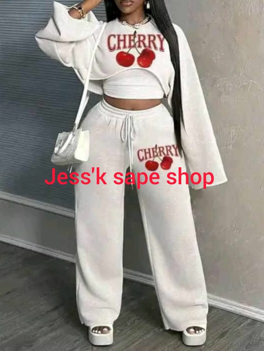 Découvrez cet ensemble décontracté Cherry avec un haut et un pantalon élégant. Parfait pour un look tendance et confortable, idéal pour sortir ou se détendre à la maison.
