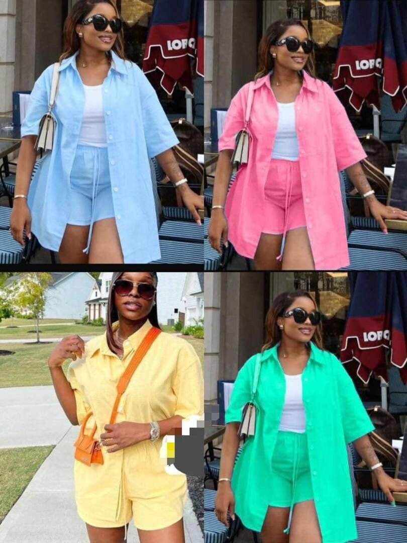 Adoptez le style estival avec cet ensemble décontracté composé d'une chemise et d'un short assortis disponibles en plusieurs couleurs vives. Parfait pour vos sorties quotidiennes ou vos vacances, cet ensemble offre à la fois confort et élégance. Portez-le avec vos accessoires préférés pour une allure chic.