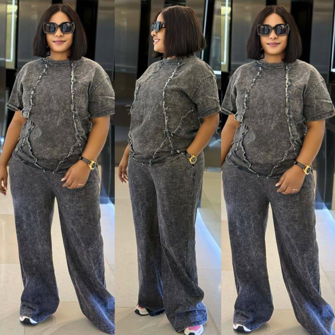 Optez pour cet ensemble décontracté en jean effet usé, parfait pour un look quotidien stylé. Confortable et tendance, il est idéal pour vos sorties ou journées relax. Associez-le à vos sneakers préférés pour un style moderne.