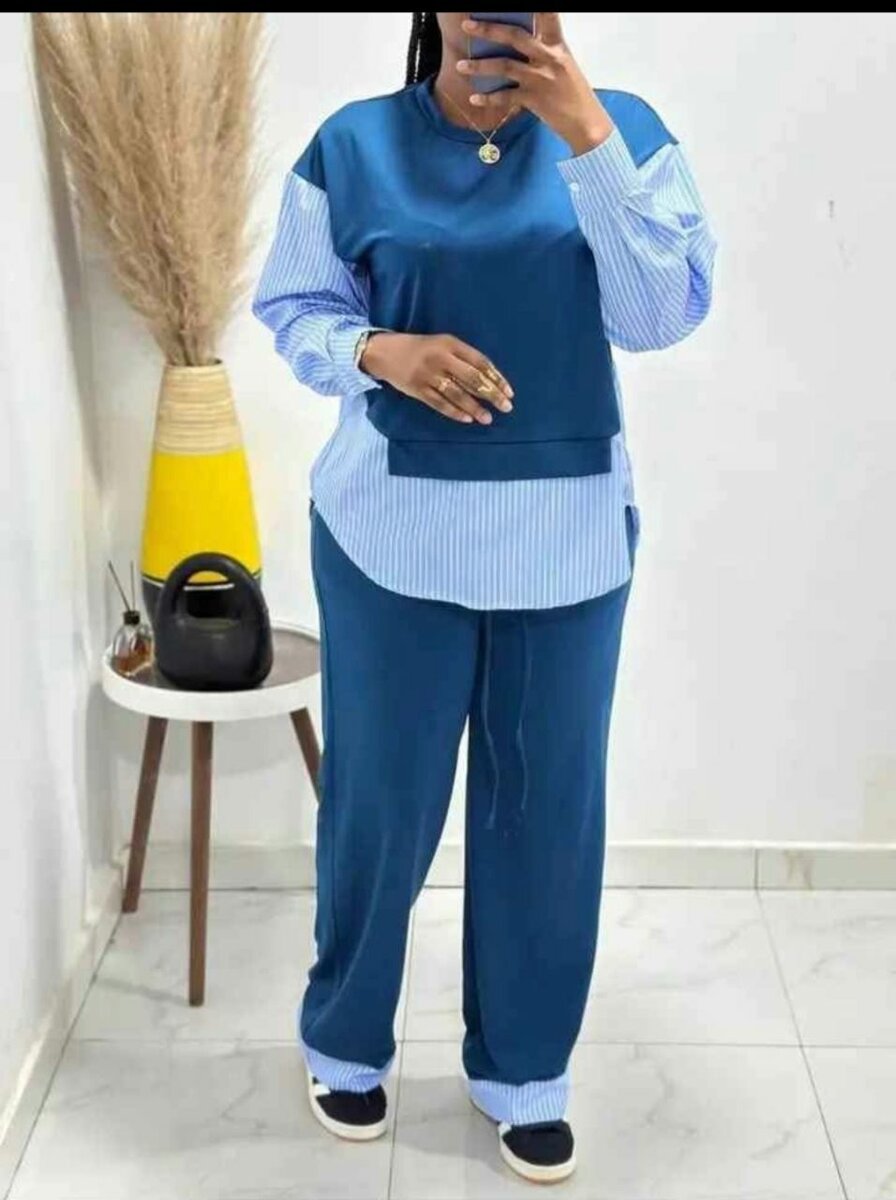 Découvrez cet ensemble décontracté pour femmes, idéal pour un style chic et confortable. Composé d'un haut à manches longues avec détails rayés et d'un pantalon ample, ce vêtement est parfait pour une journée de détente ou une sortie en ville. Disponible en plusieurs couleurs, il s'adapte à toutes les occasions. Achetez-le maintenant pour un look tendance et relax!