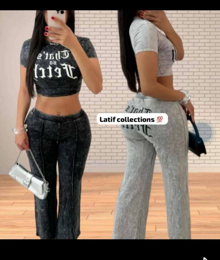 Ensemble décontracté deux pièces pour femme, idéal pour un look quotidien moderne et confortable. Comprend un haut à manches courtes et un pantalon taille haute. Disponible en plusieurs coloris, idéal pour sorties décontractées ou détente à la maison.
