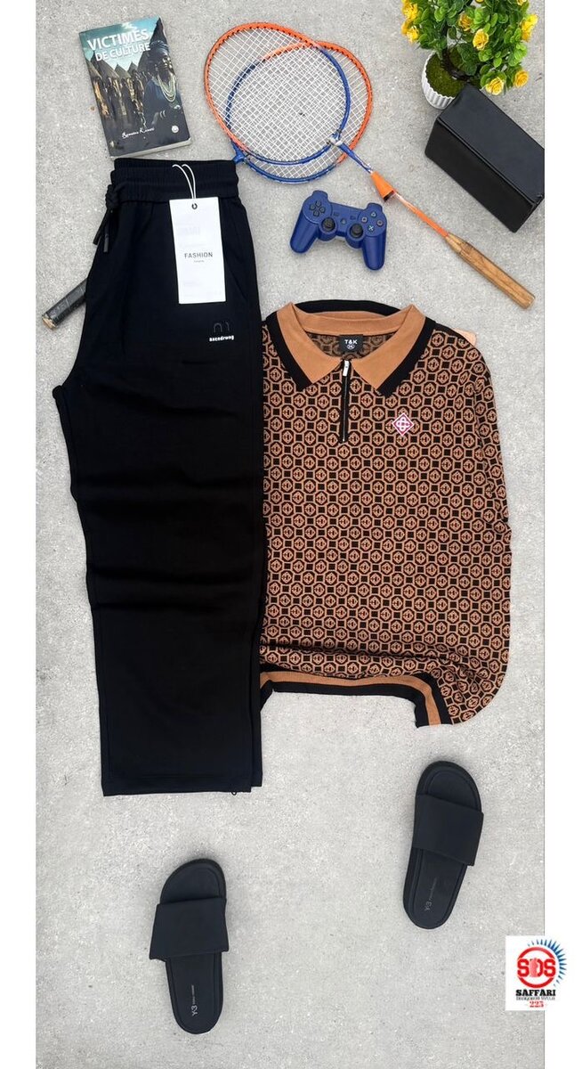 Optez pour ce set décontracté et stylé pour hommes, comprenant un pantalon élégant et un polo branché. Parfait pour les sorties ou les moments de détente. Ajoutez une paire de sandales confortables pour compléter le look. Idéal pour un confort quotidien avec une touche de style.