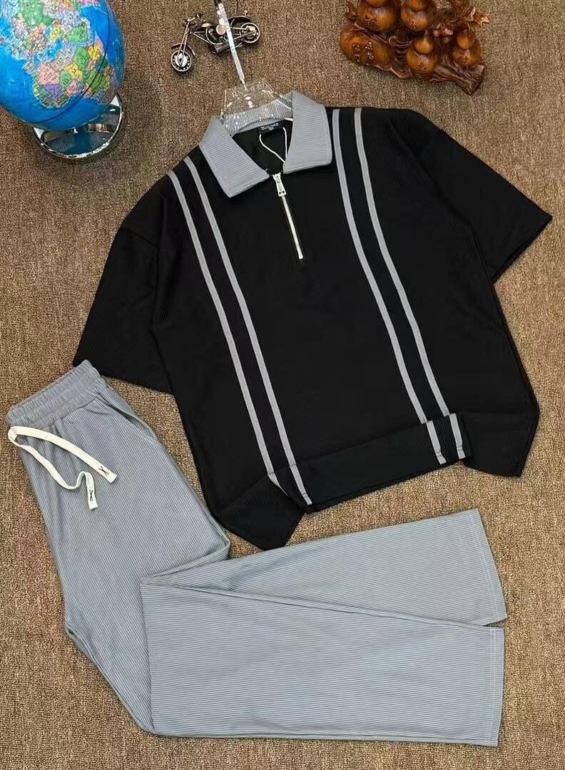 Découvrez notre ensemble décontracté pour homme, composé d'un polo à col zippé élégant et d'un pantalon confortable. Parfait pour un look décontracté et stylé au quotidien. Idéal pour les sorties entre amis ou les moments de détente. Fabriqué avec des matériaux de qualité pour un confort optimal.