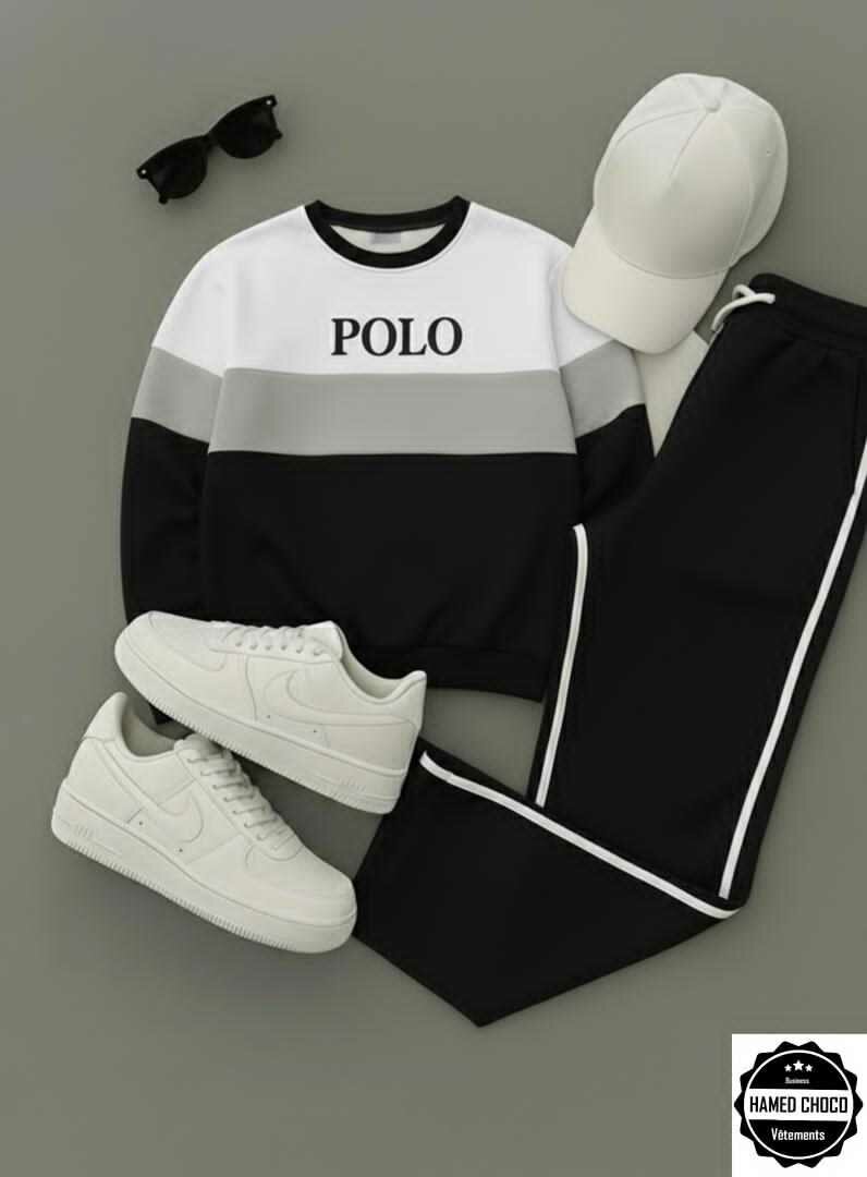 Optez pour le confort et le style avec cet ensemble Polo décontracté. Parfait pour un look moderne et élégant, il inclut un sweat à capuche, un pantalon assorti et des baskets. Idéal pour les sorties décontractées ou le sport léger. Conçu pour ceux qui apprécient le confort sans compromis sur le style.
