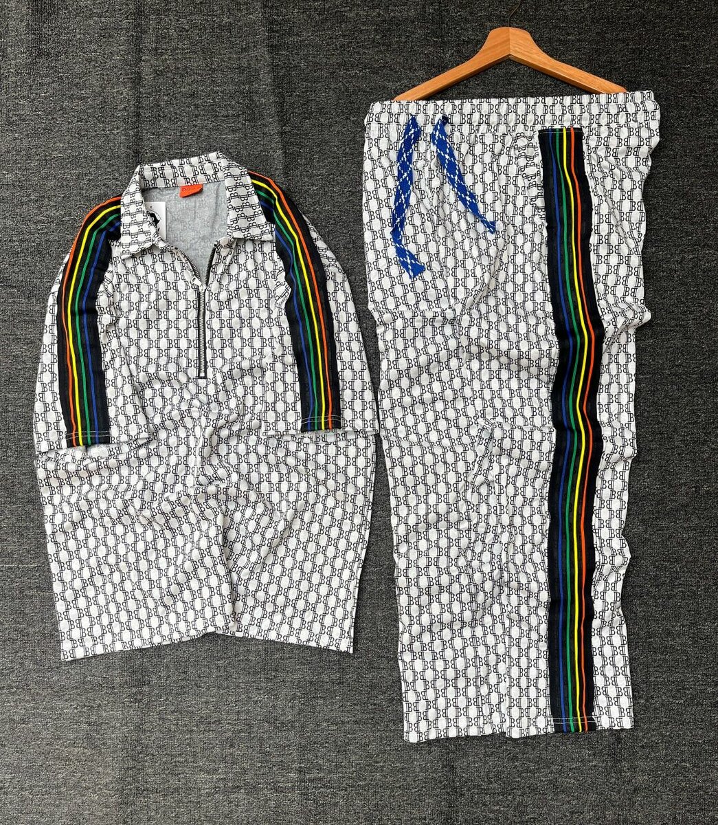 Optez pour ce superbe ensemble décontracté à motifs géométriques avec rayures colorées pour un look tendance et confortable. Idéal pour les sorties décontractées ou les moments de détente à la maison, cet ensemble offre un style unique et un confort optimal. Parfait pour exprimer votre personnalité.