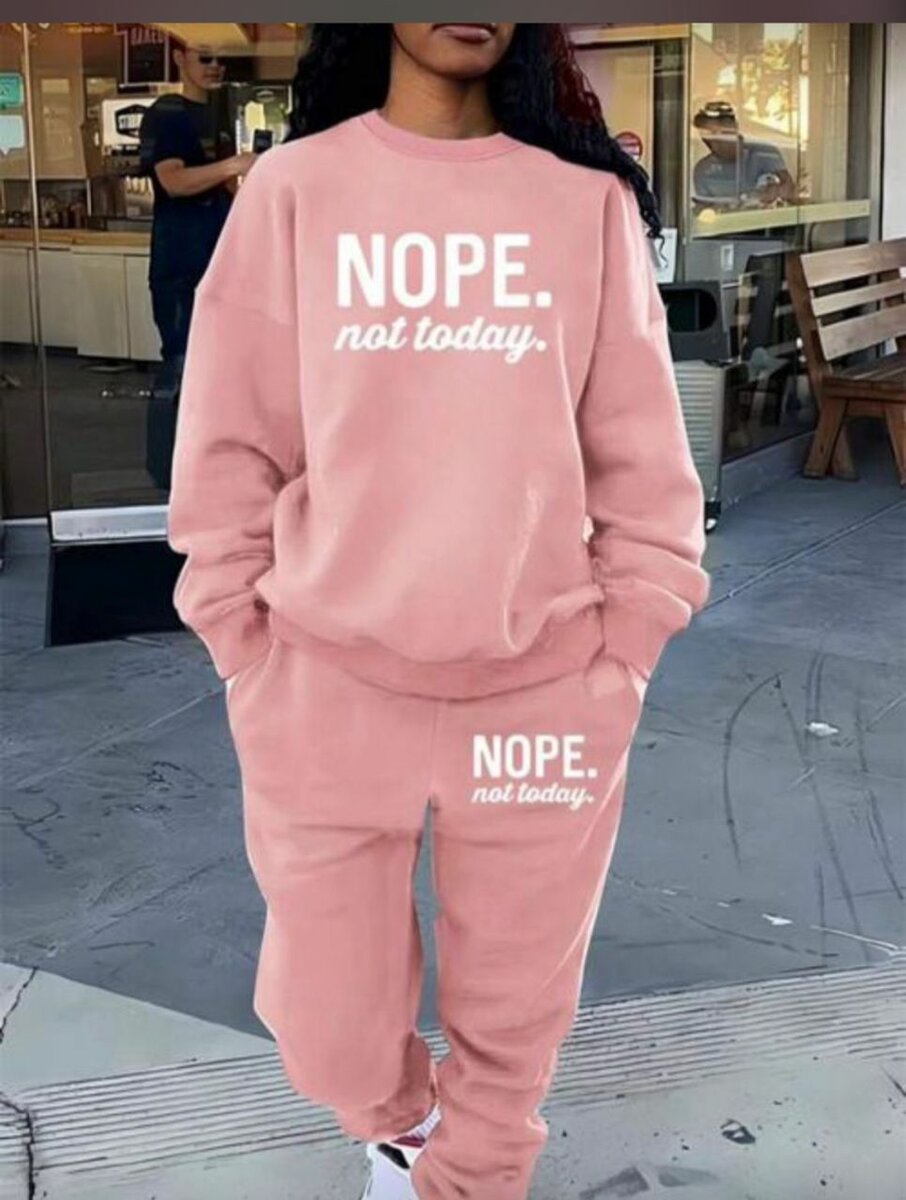 Ensemble confortable et cozy rose "NOPE, not today". Parfait pour les journées relaxantes ou les sorties décontractées. Fabriqué avec un tissu doux pour un maximum de confort.