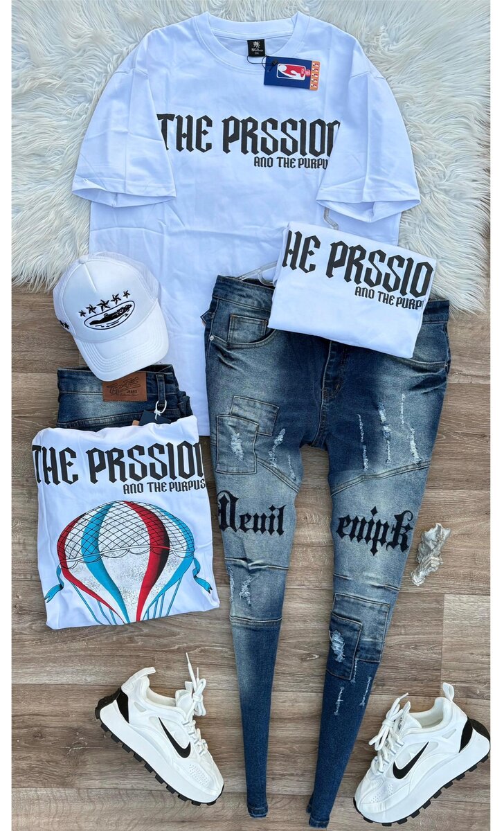 Découvrez cet ensemble décontracté et stylé, composé d'un t-shirt imprimé, jean slim, casquette et baskets. Parfait pour un look urbain et confortable, idéal pour les sorties entre amis ou les balades en ville.