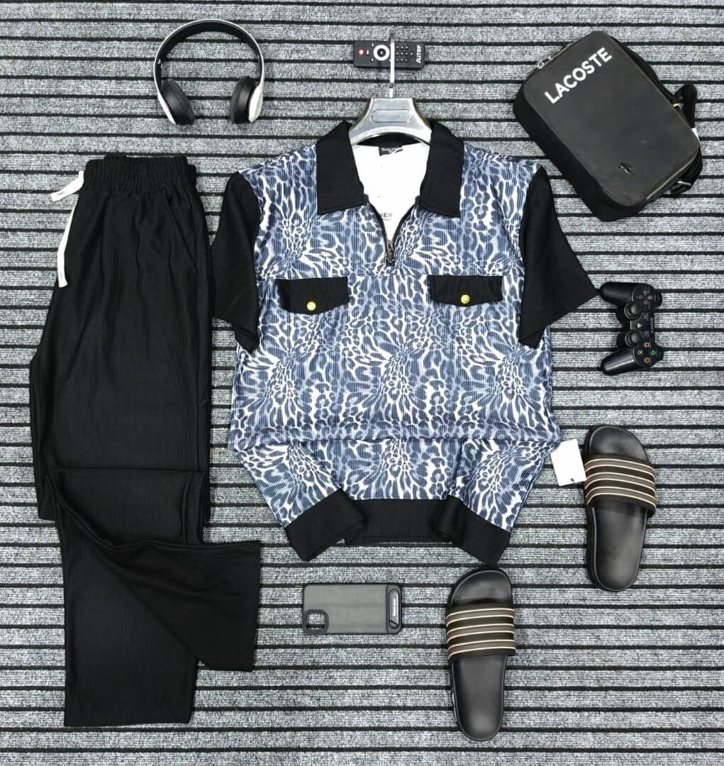 Adoptez un style décontracté avec cet ensemble moderne comprenant un polo imprimé, un pantalon confortable et des accessoires élégants. Parfait pour les sorties urbaines ou les moments de détente. Ne manquez pas le confort et le style avec ce look complet!