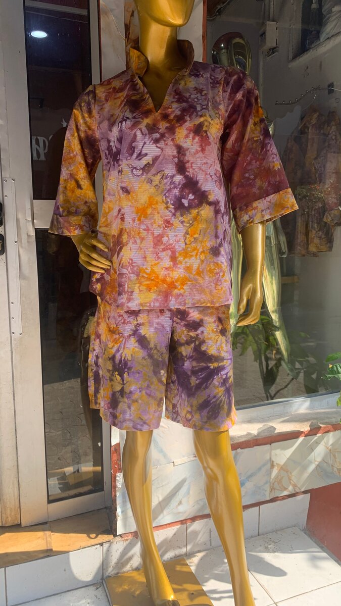 Découvrez cet ensemble décontracté et vibrant avec un motif tie-dye unique. Idéal pour les journées décontractées, cet ensemble vous offre confort et style. Confectionné avec soin, il se complète parfaitement pour toutes les occasions estivales.