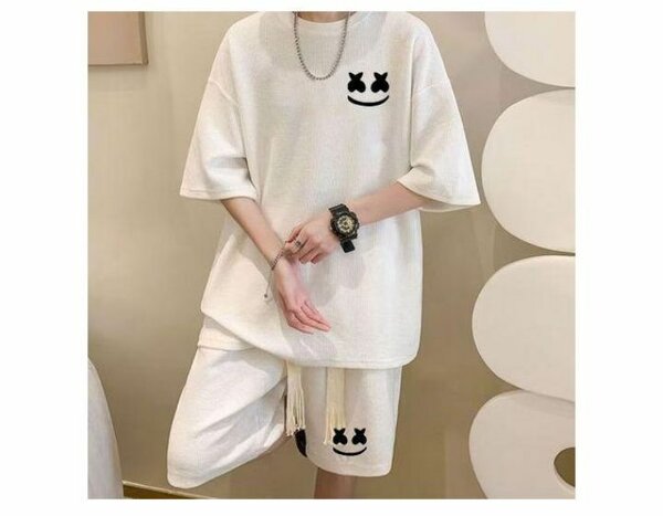 Ensemble confortable en coton doux, idéal pour un look décontracté. Comprend un t-shirt et un short assorti, parfaits pour détente et sorties. Design moderne avec logo élégant, convient pour toutes les saisons.