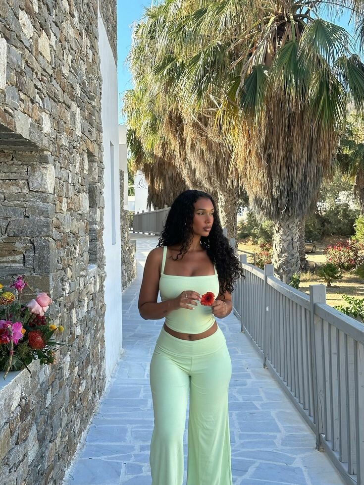 Cet ensemble deux pièces vert clair est idéal pour une journée décontractée. Confortable et élégant, il est parfait pour les promenades estivales. Le haut sans manches et le pantalon ample assurent confort et style. Ajoutez une touche de couleur à votre garde-robe avec cet ensemble tendance!