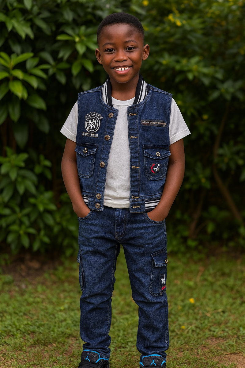 Cet ensemble denim élégant pour enfant est parfait pour toute occasion. Conçu pour le confort et le style, il comprend une veste sans manches et un jean assorti. Idéal pour les activités de plein air ou les sorties décontractées, cet ensemble se distingue par ses détails brodés et sa coupe moderne.