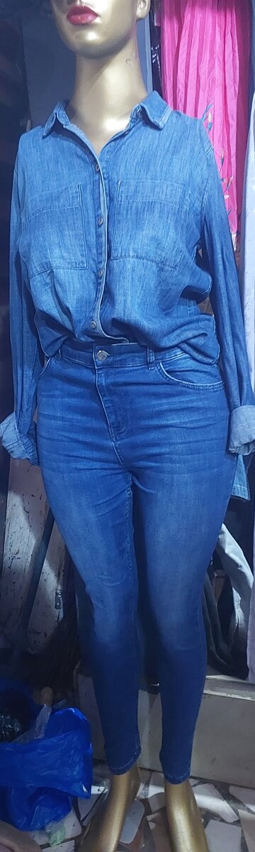 Ce superbe ensemble denim, composé d'une chemise et d'un jean, est parfait pour un look décontracté mais élégant. Idéal pour toutes les occasions, sa matière confortable assure une silhouette féminine et moderne. Un must-have pour les amateurs de mode.