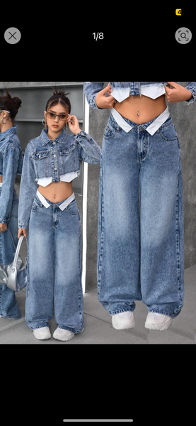 Craquez pour cet ensemble denim pour femme, parfait pour un look chic et décontracté. Composé d'une veste courte et d'un pantalon ample, il est idéal pour toutes occasions.