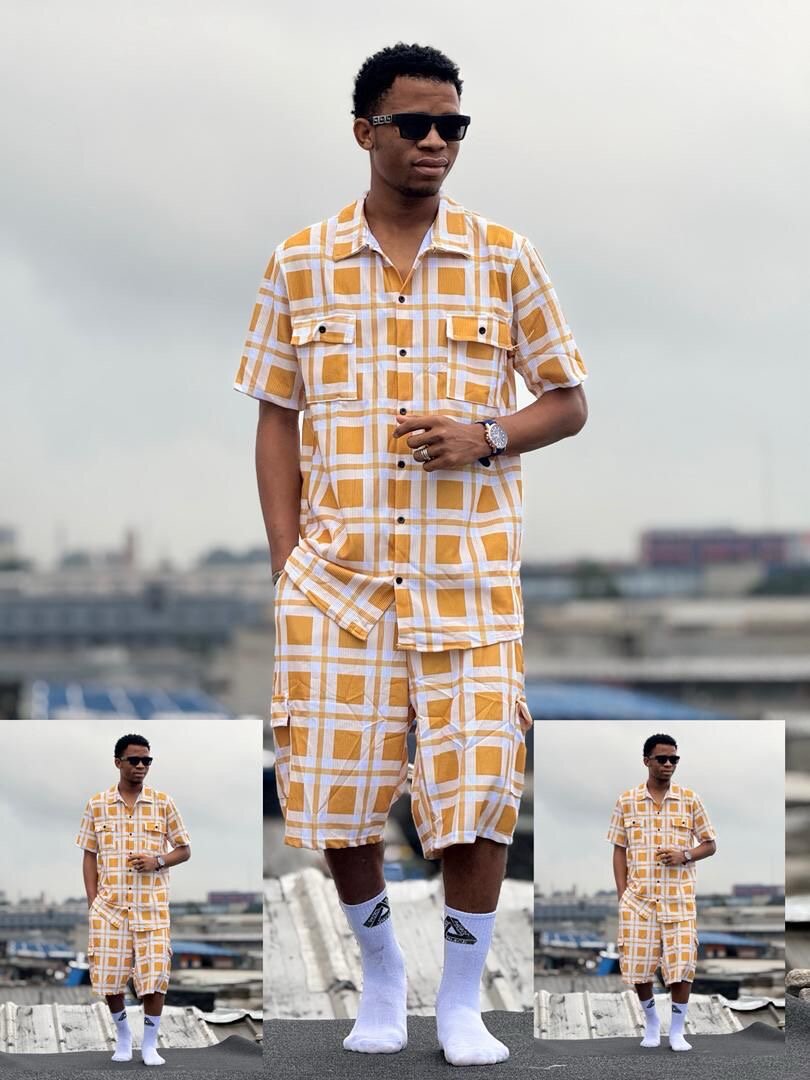 Ensemble short et chemise à carreaux jaune, parfait pour un look décontracté et estival. Conçu pour le confort au quotidien, il est idéal pour les sorties en ville ou les vacances. Fabriqué avec des matériaux légers, cet ensemble offre une combinaison parfaite de style et de praticité.