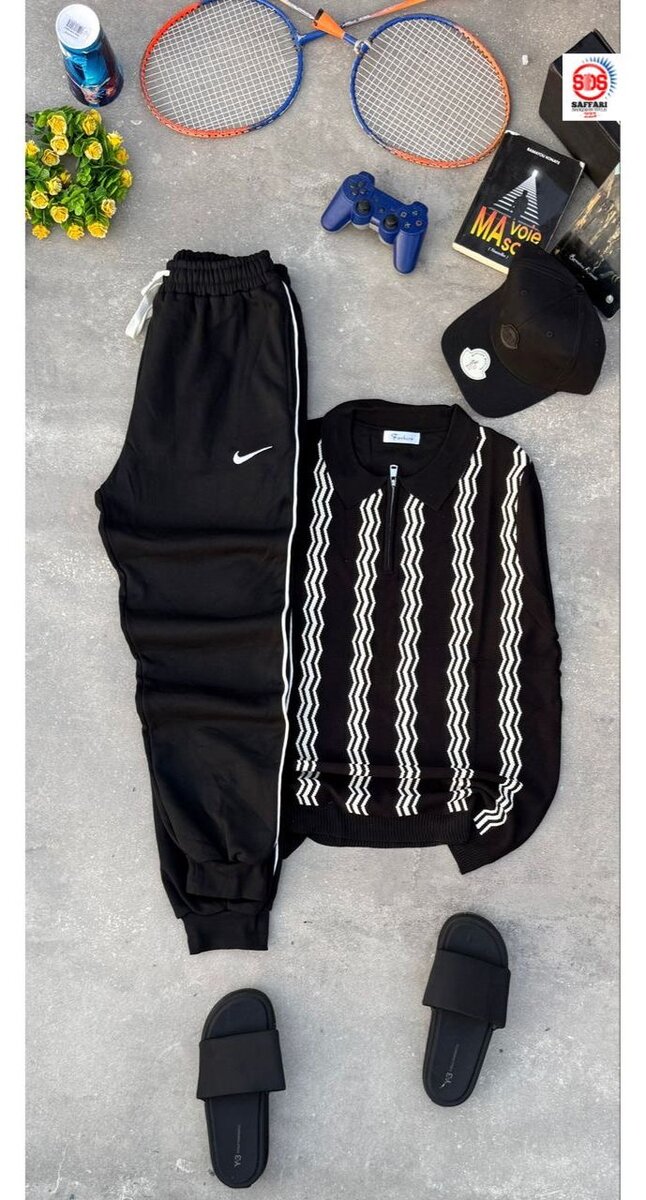Associez confort et style avec cet ensemble noir composé d'un pull à motif et d'un pantalon de survêtement. Idéal pour vos journées relax ou activités sportives. Confort optimal et allure tendance garantis.