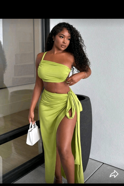 Élégant ensemble deux pièces vert, idéal pour soirées ou sorties. Confortable et stylé, avec détails floraux attrayants. Associez-le avec des accessoires pour un look complet!