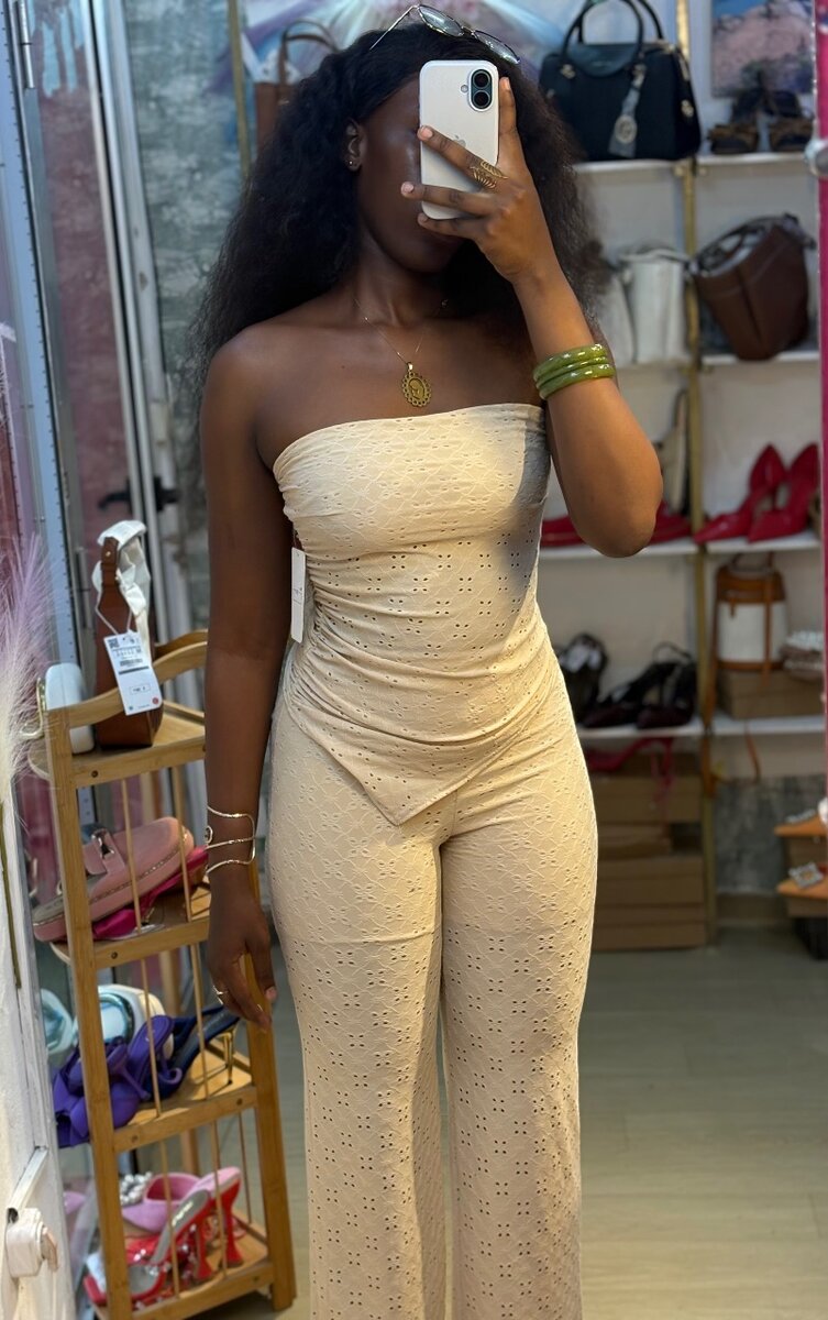 Découvrez cette élégante ensemble sans bretelles, parfaite pour les soirées d'été. Confortable et stylée, elle mettra en valeur votre silhouette. Idéale pour une occasion spéciale ou une sortie entre amis.