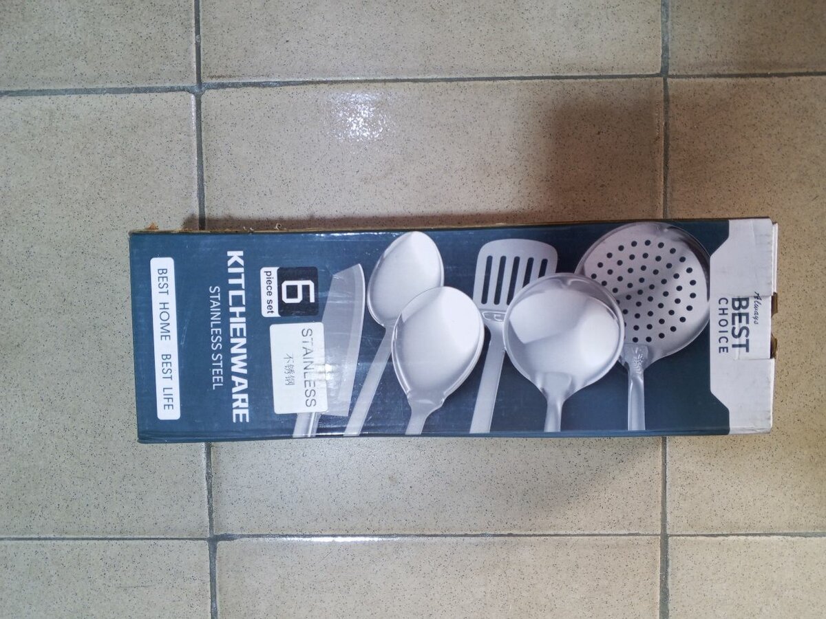 Lot de 6 pièces comprenant une cuillère à égoutter, une spatule, une cuillère, une louche. Fabriqué en acier inoxydable résistant et durable. Facilite la préparation et la cuisson de vos repas.