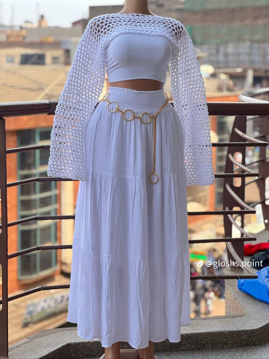 Découvrez cet ensemble chic pour femme composé d'un haut en crochet ouvert et d'une jupe longue fluide, parfait pour un style estival et raffiné. Disponible en plusieurs couleurs vibrantes, ce set est idéal pour les sorties décontractées et les occasions spéciales. Le détail de ceinture dorée ajoute une touche de glamour.