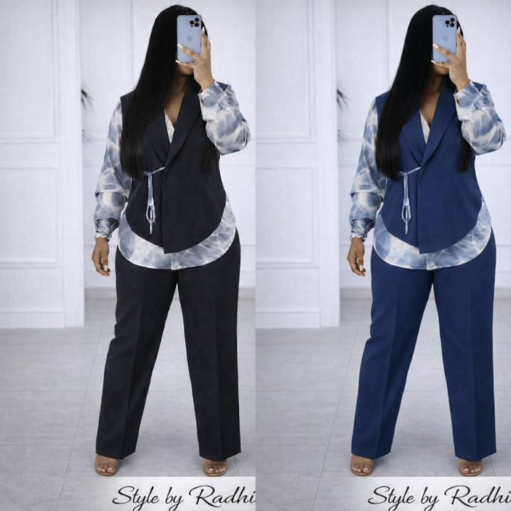 Cet ensemble stylé par Radhia combine une chemise chic et un pantalon assorti, idéal pour une tenue élégante au quotidien. Fabriqué dans des matériaux de qualité, il offre à la fois confort et style. Parfait pour le bureau ou des sorties décontractées. Disponible en plusieurs designs raffinés.