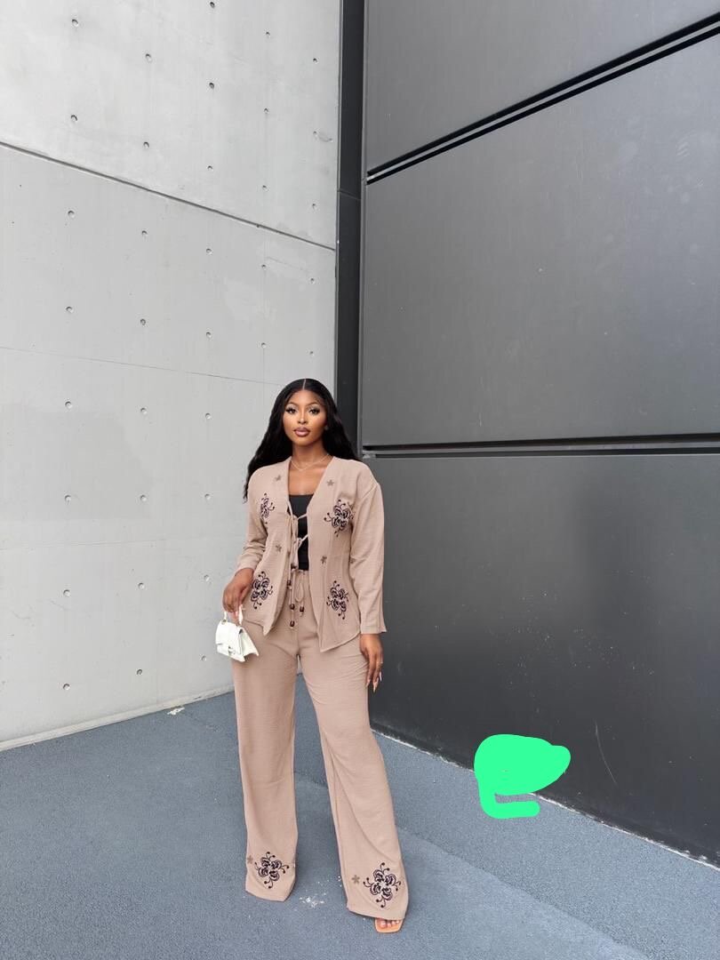 Découvrez notre ensemble élégant pour femme, parfait pour toutes les occasions. Cet ensemble est embelli de délicats motifs brodés, ajoutant une touche d'élégance et de style. Parfait pour le bureau, les événements formels ou une soirée en ville. Confort et glamour assurés!
