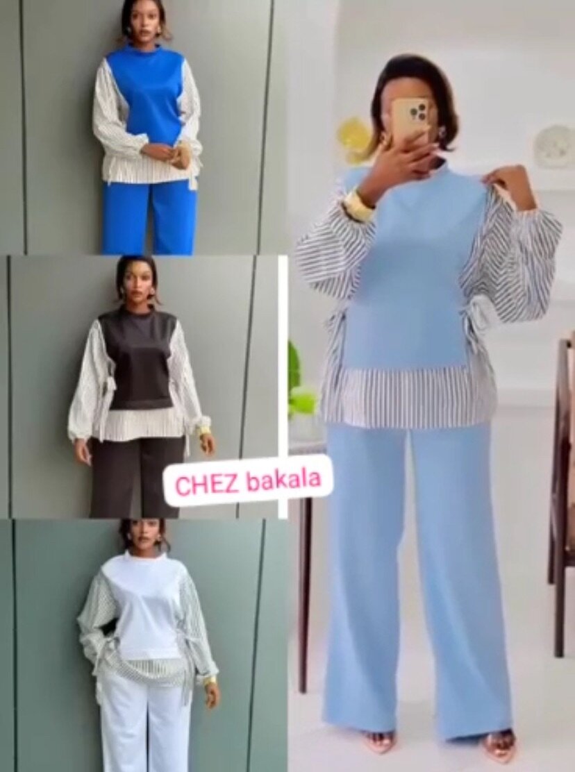 Ensemble élégant pour femme avec top rayé et pantalon large. Idéal pour un look chic et décontracté. Disponible en plusieurs couleurs pour s'adapter à vos goûts. Parfait pour les sorties en ville ou les réunions.