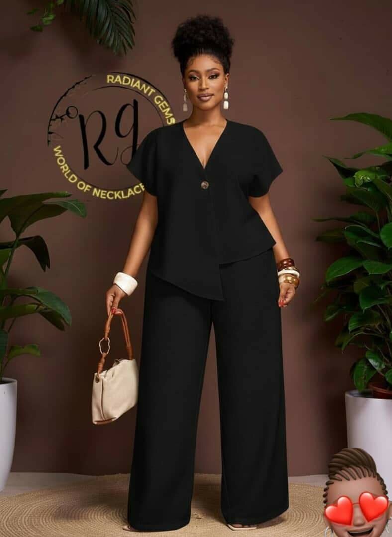 Découvrez cet ensemble élégant pour femme, parfait pour toutes occasions. Confortable et stylé, il allie sophistication et simplicité. Idéal pour un look impeccable au travail ou lors d'une sortie.