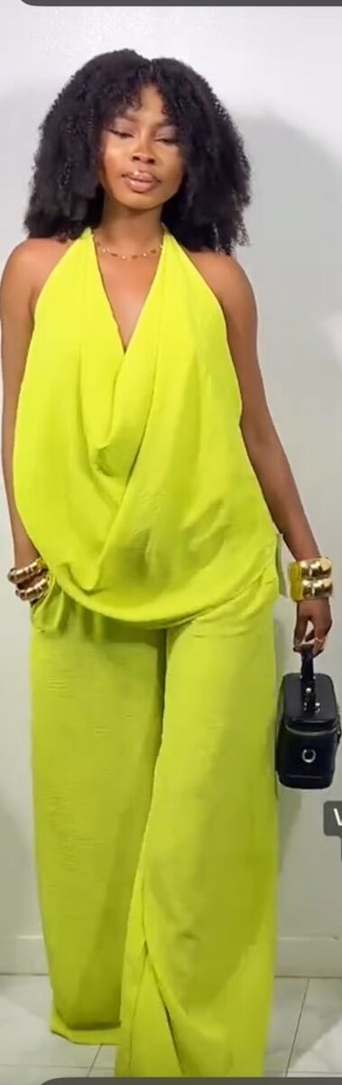 Cet ensemble élégant et lumineux est parfait pour les sorties estivales. Composé d'un haut dos nu et d'un pantalon large, il offre confort et style. Soyez la star de chaque événement avec ce look moderne et audacieux qui attire tous les regards!