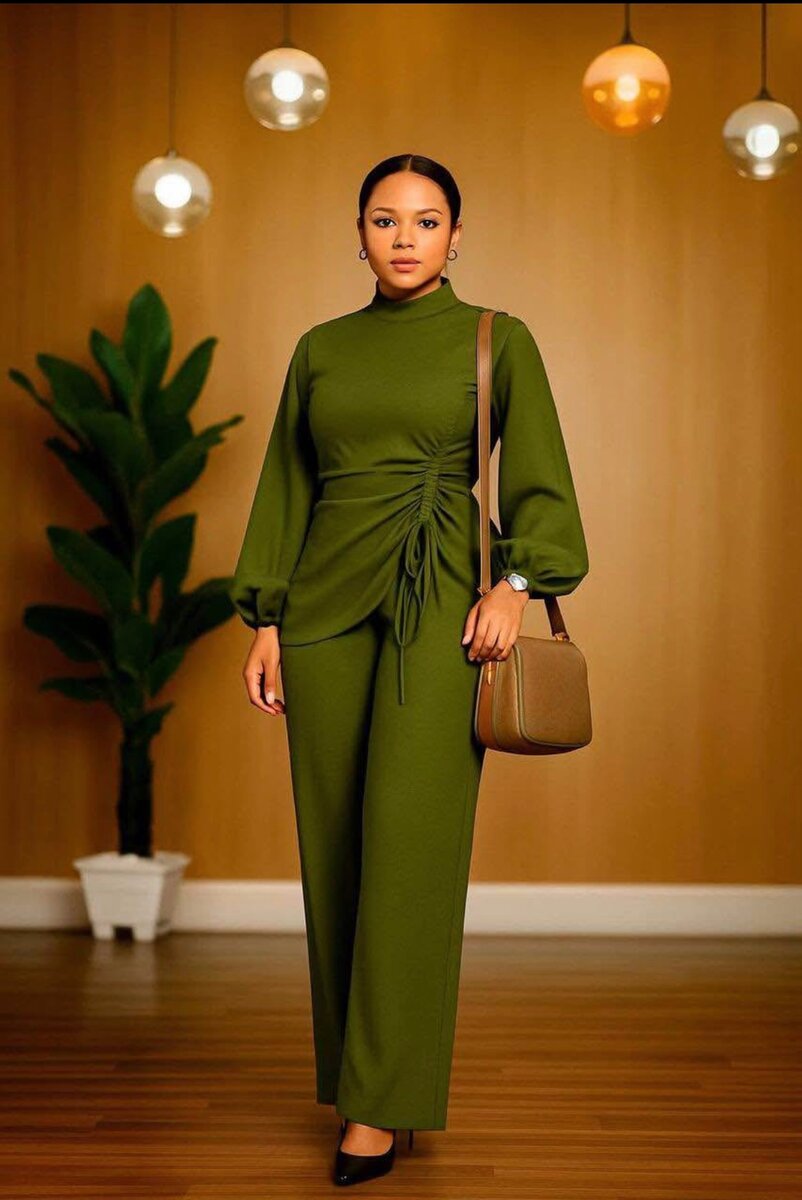 Sophistiqué et stylé, cet ensemble féminin se compose d'un haut à manches bouffantes et d'un pantalon large, parfait pour toutes les occasions. Sa coupe flatteuse avec des détails froncés ajoute une touche moderne, tandis que le tissu doux assure un confort tout au long de la journée. Idéal pour le bureau, un dîner ou une sortie décontractée, ce vêtement s'adapte à vos envies pour une allure toujours impeccable.