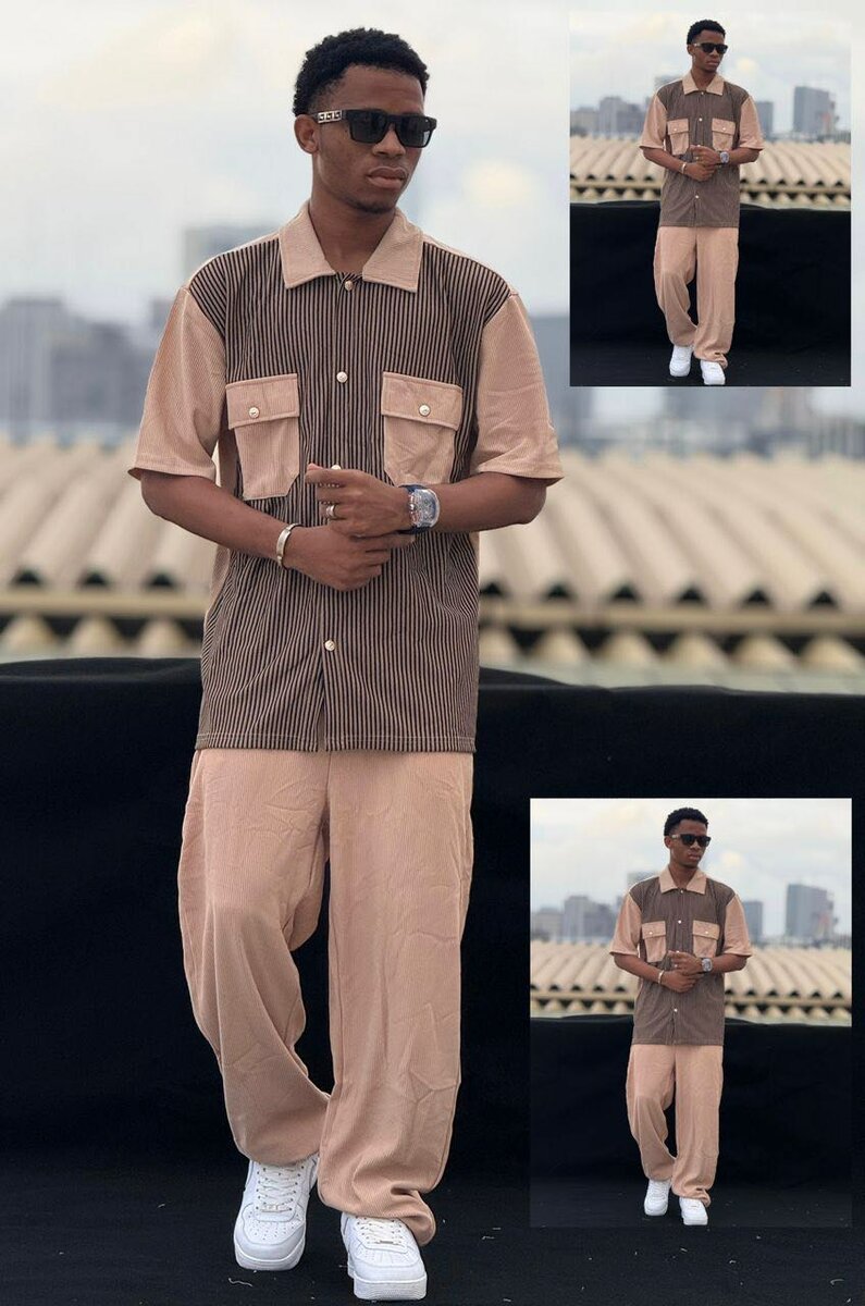 Découvrez notre ensemble élégant pour hommes, idéal pour un look moderne et décontracté. Composé d'une chemise rayée avec des poches et un pantalon assorti, cet ensemble est parfait pour toute occasion urbaine. Disponible en plusieurs couleurs tendance. Choisissez le confort sans sacrifier le style.