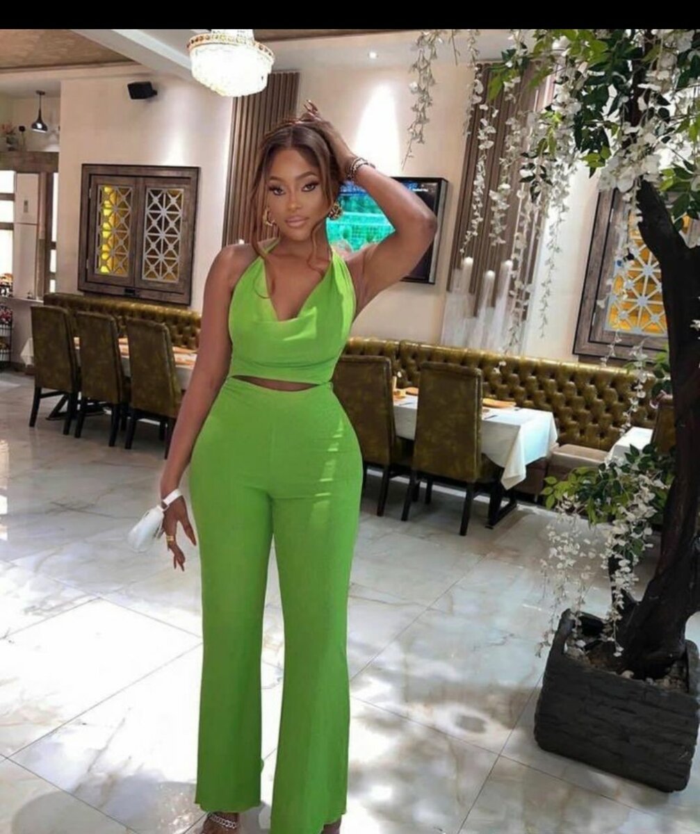 Découvrez cet ensemble chic vert, parfait pour une soirée élégante ou un événement spécial. Conçu dans un tissu confortable et élégant, il met en valeur la silhouette avec son haut à col en V et son pantalon à taille haute. Idéal pour affirmer votre style avec audace.