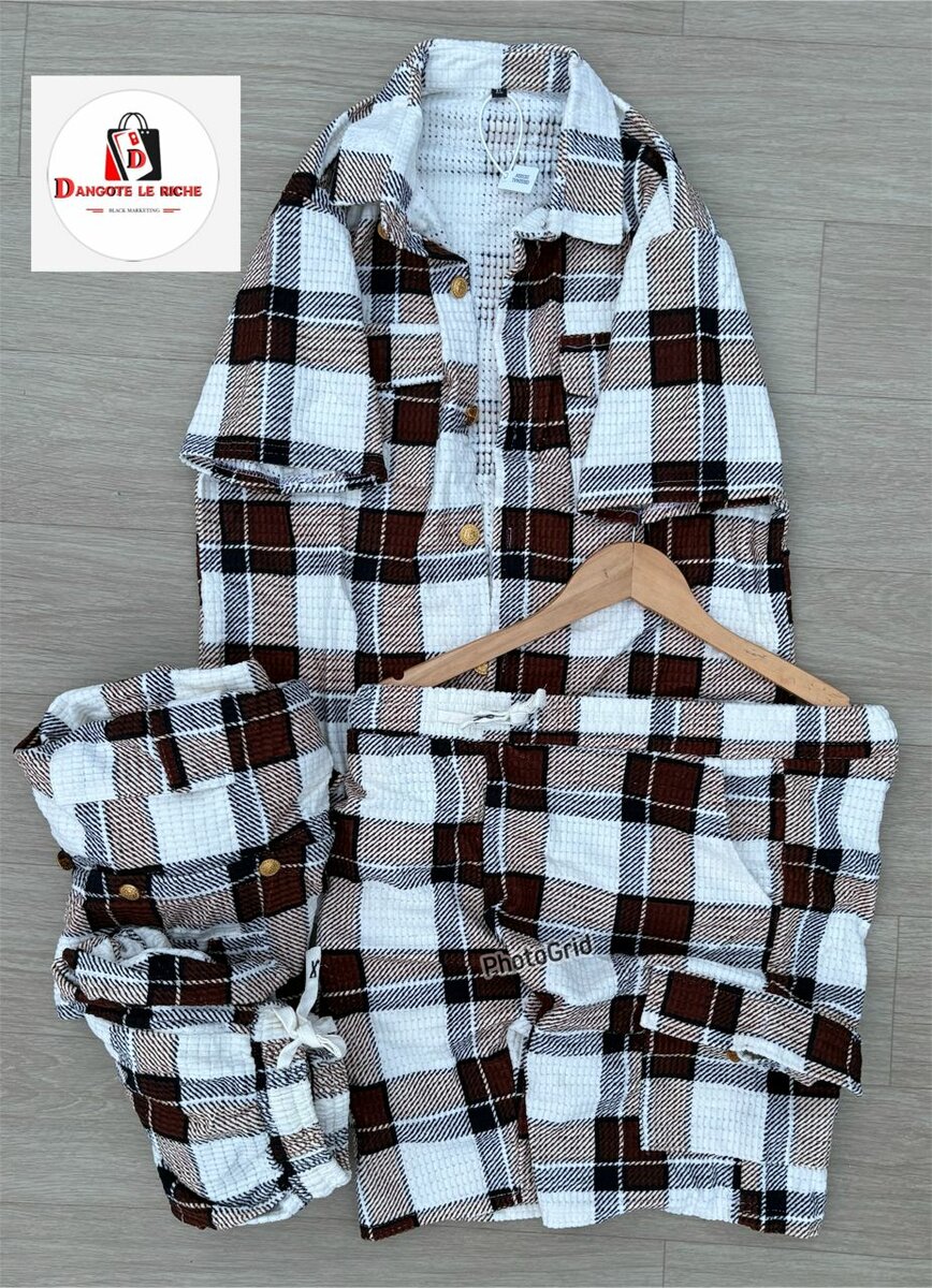 Découvrez cet ensemble moderne en flanelle à carreaux, idéal pour un look décontracté et chaleureux. Composé d'une chemise et d'un pantalon assortis, cet ensemble est parfait pour l'automne et l'hiver. Fabriqué en flanelle douce, il offre un confort et une chaleur exceptionnels. Portez-le pour une sortie entre amis ou une journée relaxante à la maison. Un incontournable pour votre garde-robe!
