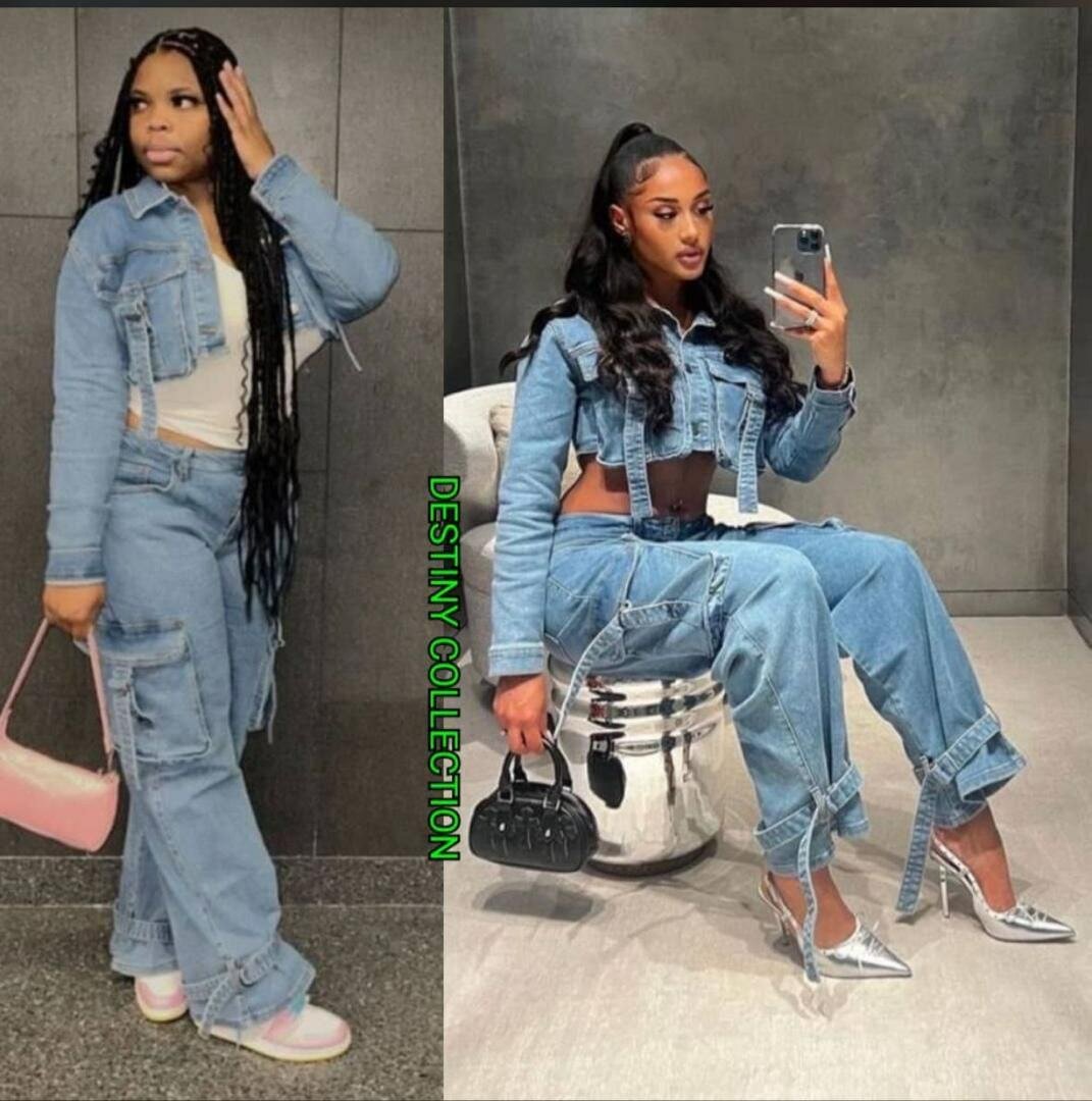 Transformez votre look avec cet ensemble en jean décontracté pour femmes. Avec une veste courte et un pantalon cargo stylé, c’est le choix parfait pour un style urbain chic et moderne. Idéal pour des sorties en ville ou des occasions décontractées. Associez-le avec vos accessoires préférés pour un look personnalisé et tendance.