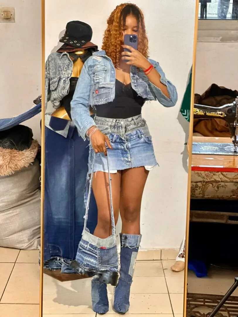 Transformez votre garde-robe avec cet ensemble en jean audacieux et stylé. Composé d'une veste, d'une jupe, et d'accessoires assortis, c'est le look parfait pour les sorties urbaines. Le denim texturé et les détails déchirés ajoutent une touche unique et moderne. Complétez le tout avec des bottes en jean pour une allure incomparable. Idéal pour les fashionistas qui aiment se démarquer.