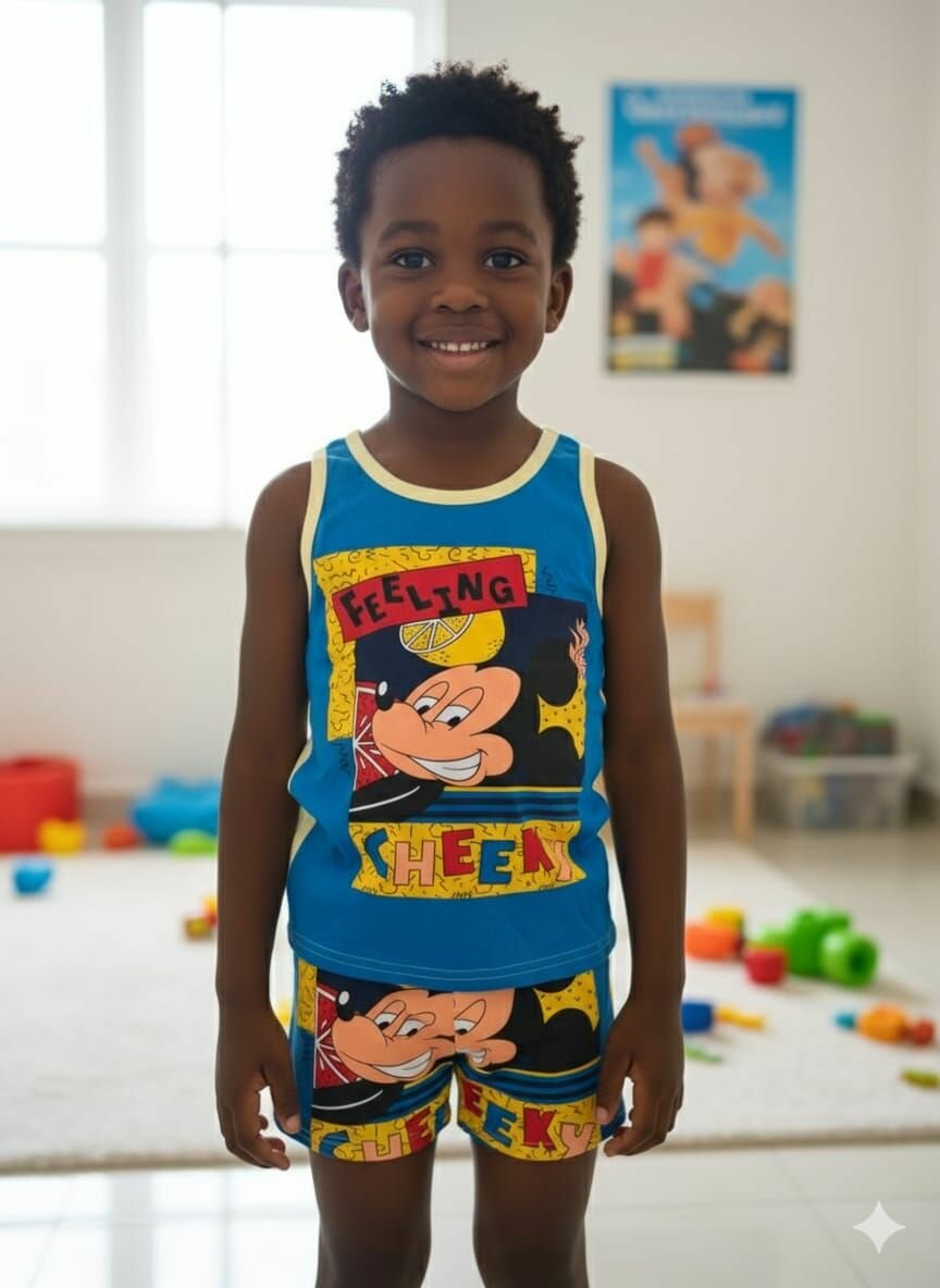 Ensemble débardeur boxers coloré pour enfant avec un design amusant de personnage de dessin animé. Confort idéal pour les nuits paisibles. Parfait pour les jeunes fans de mode ludique.
