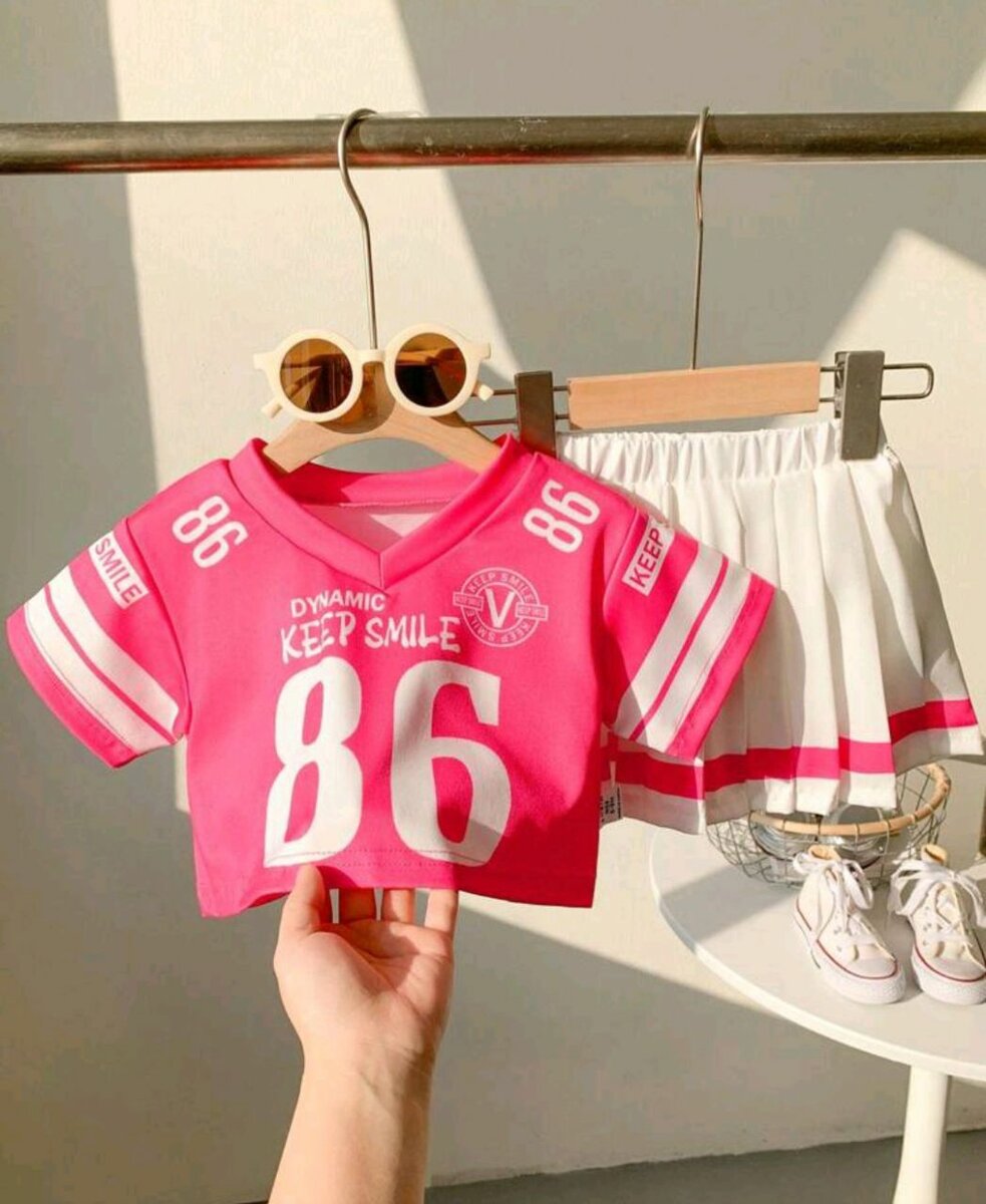 Optez pour cet adorable ensemble sportif pour enfant, composé d'un t-shirt rose vif avec motifs et une jupe blanche plissée à bandes. Idéal pour des activités décontractées ou des sorties estivales, cet ensemble assure confort et style à votre petit. Fabriqué à partir de matériaux doux et respirants, il sera le choix parfait pour une tenue pratique et tendance.