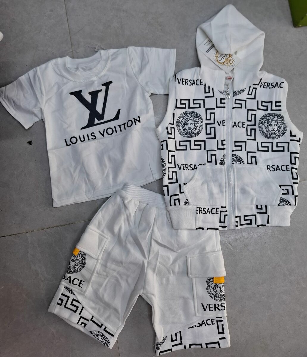 Ensemble stylé pour enfant: t-shirt, gilet et short. Parfait pour un look branché au quotidien ou pour des occasions spéciales. Confortable et à la mode!