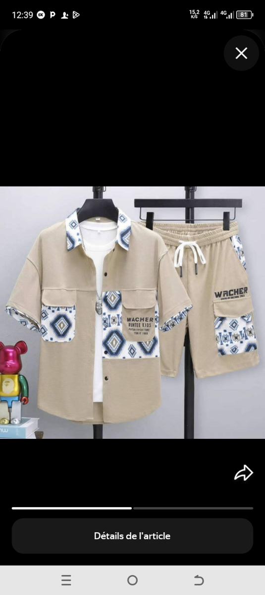 Découvrez cet ensemble d'été décontracté pour homme, parfait pour un look tendance et confortable. Conçu avec des motifs géométriques élégants, il inclut une chemise à manches courtes et un short assorti. Idéal pour les sorties estivales, ce duo léger allie style et simplicité, faisant de vos journées un plaisir à porter.