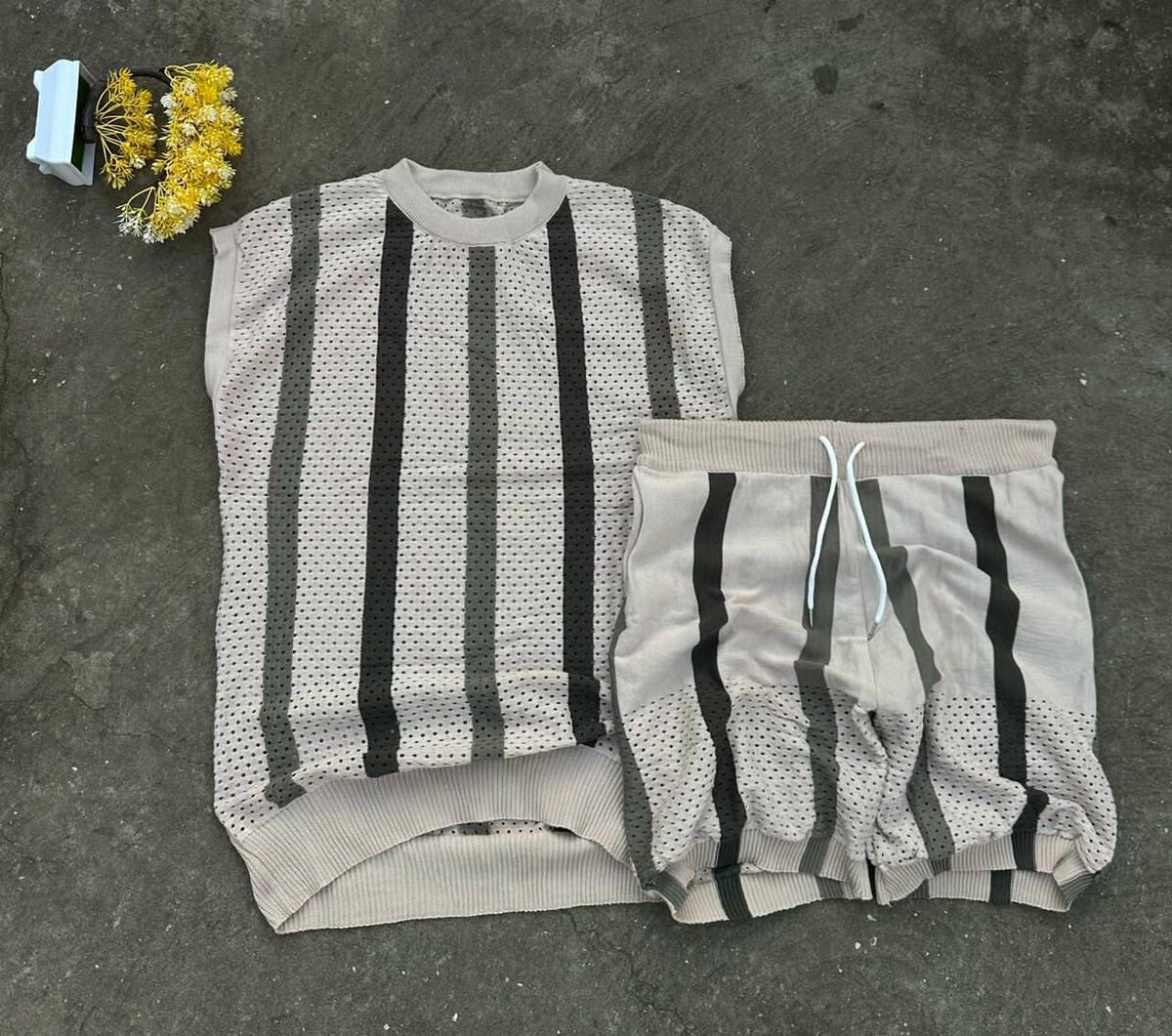 Découvrez cet ensemble d'été en maille légère avec motif rayé, idéal pour un look décontracté et stylé. Parfait pour les journées chaudes, ce set offre un confort optimal avec une touche de modernité. Portez-le lors de vos sorties en ville ou lors de moments de détente. Ne manquez pas l'occasion de l'ajouter à votre garde-robe saisonnière!