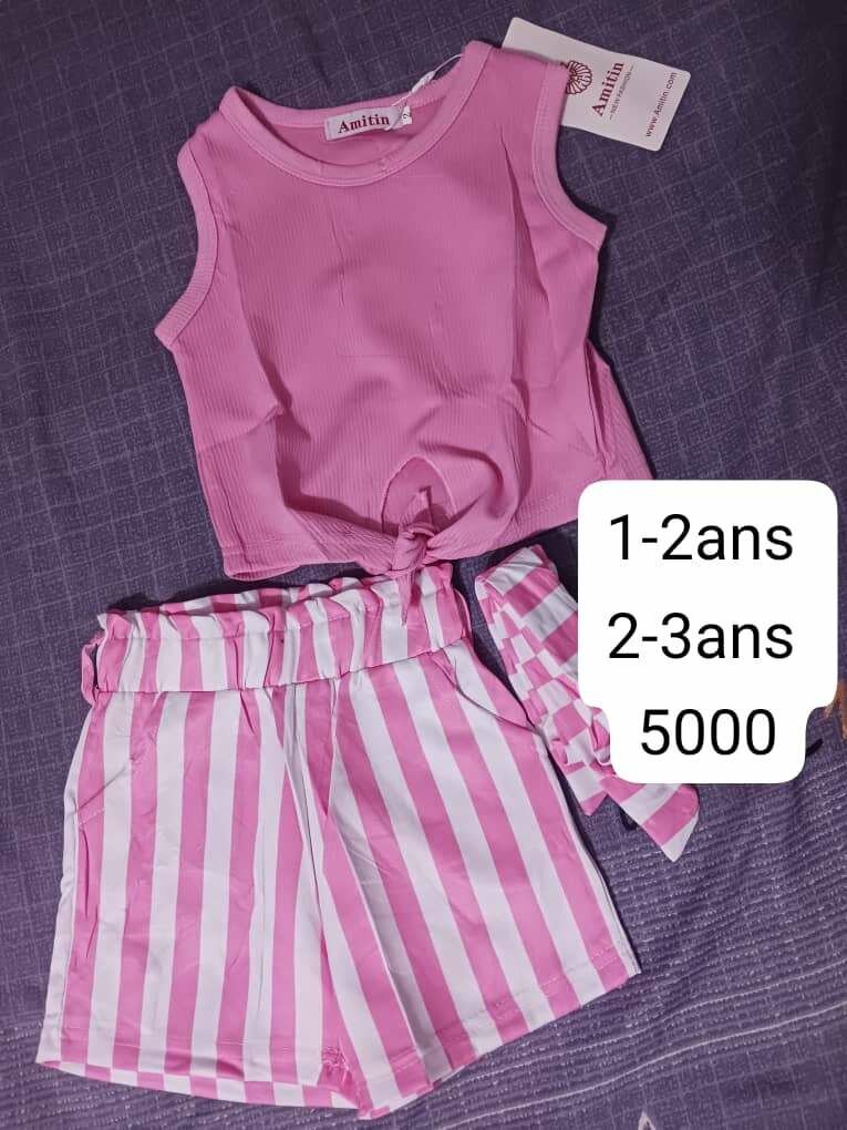 Ensemble chic d'été pour enfants, composé d'un débardeur et d'un short à rayures. Confortable et stylé, idéal pour les journées ensoleillées.