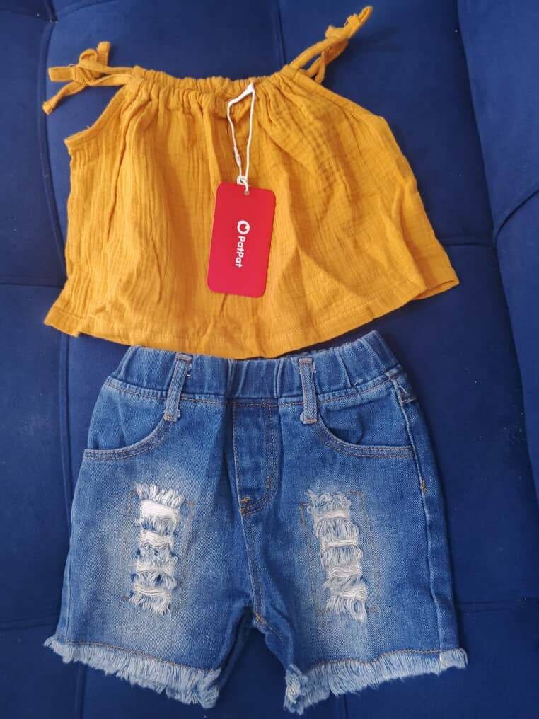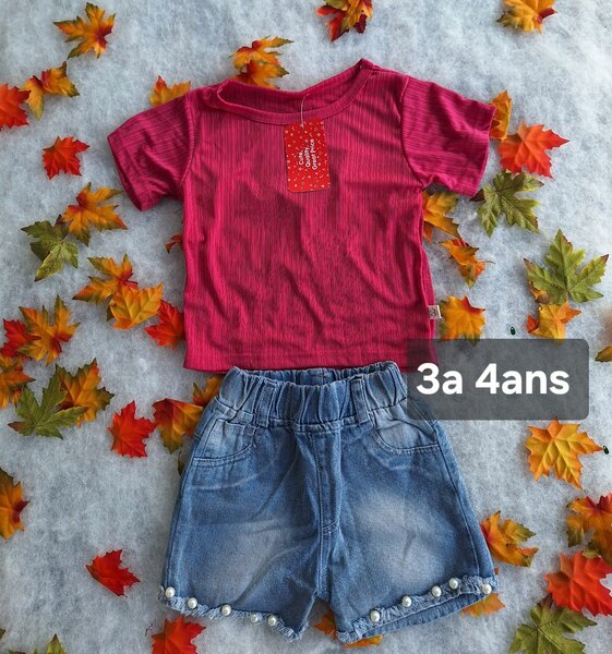Craquez pour cet ensemble tendance pour filles, composé d'un haut en coton léger au coloris vibrant et d'un short en jean décontracté avec effet usé. Idéal pour les journées ensoleillées et les sorties décontractées, cet ensemble assure confort et style. Parfait pour apporter de la fraîcheur aux garde-robes estivales des petites fashionistas.