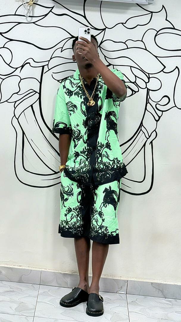 Découvrez cet ensemble estival audacieux avec un imprimé noir sur fond vert. Parfait pour les journées chaudes, il allie style et confort. Idéal pour les sorties décontractées ou les événements en plein air, cet ensemble vous fera remarquer avec son design unique et moderne.