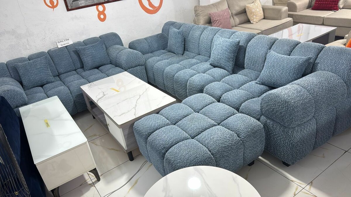 Design : C'est une version moderne du design classique Chesterfield, avec une silhouette audacieuse et des courbes douces. Il se distingue par ses coutures profondes et son tissu bouclé texturé.